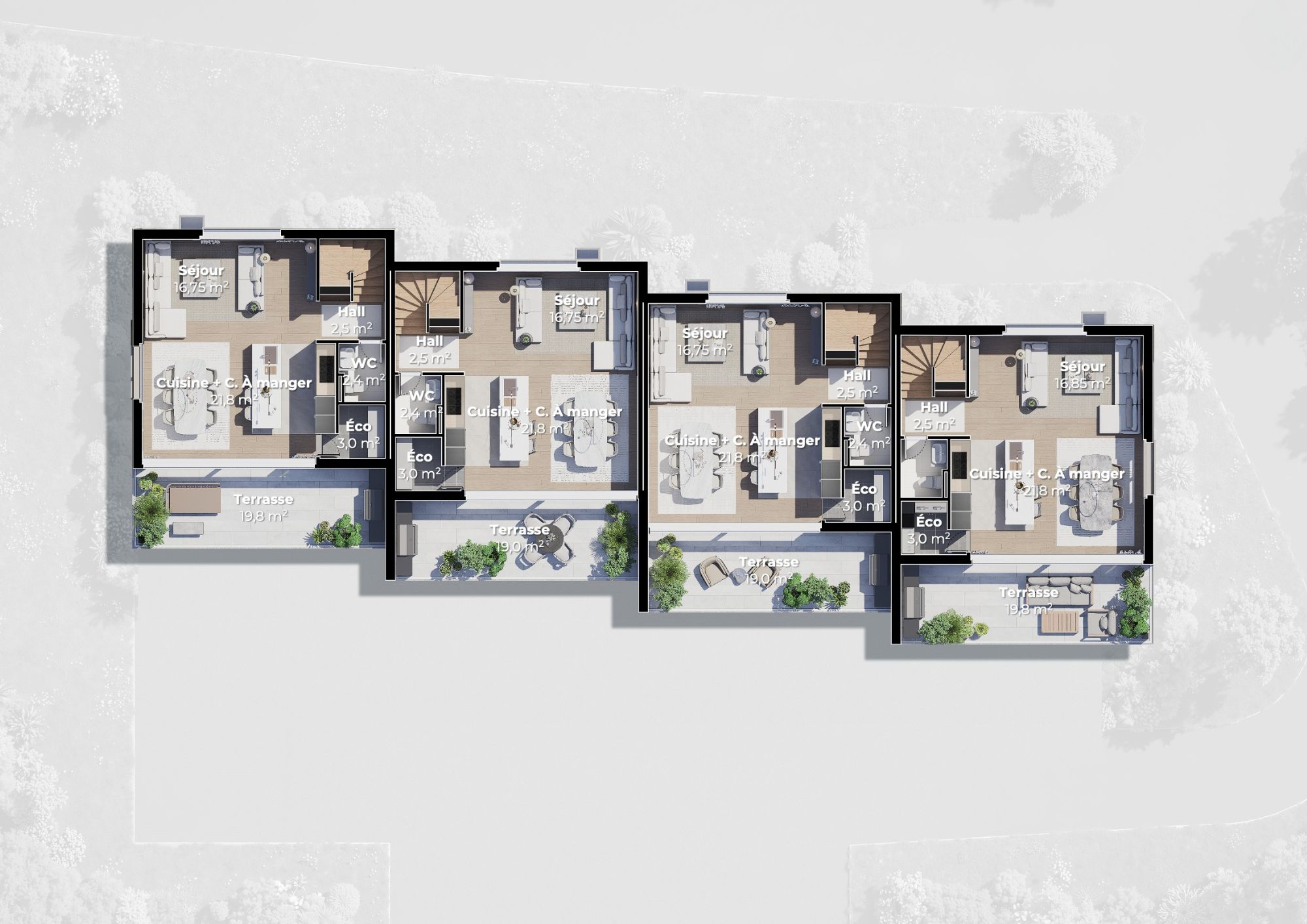 Villas A/B/C/D – Façade Sud